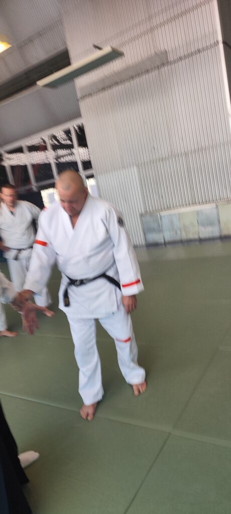 Zachowaj równowagę, opuść lub opuść, zakłócając strukturę uke.