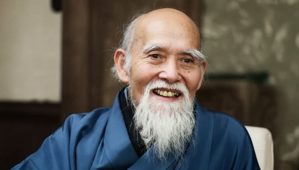 „Intymną tajemnicą Aikido jest wyrzucenie własnego złego ducha, harmonizacja się ze zmianami kosmosu i wprowadzenie kosmosu w sobie do jednego.